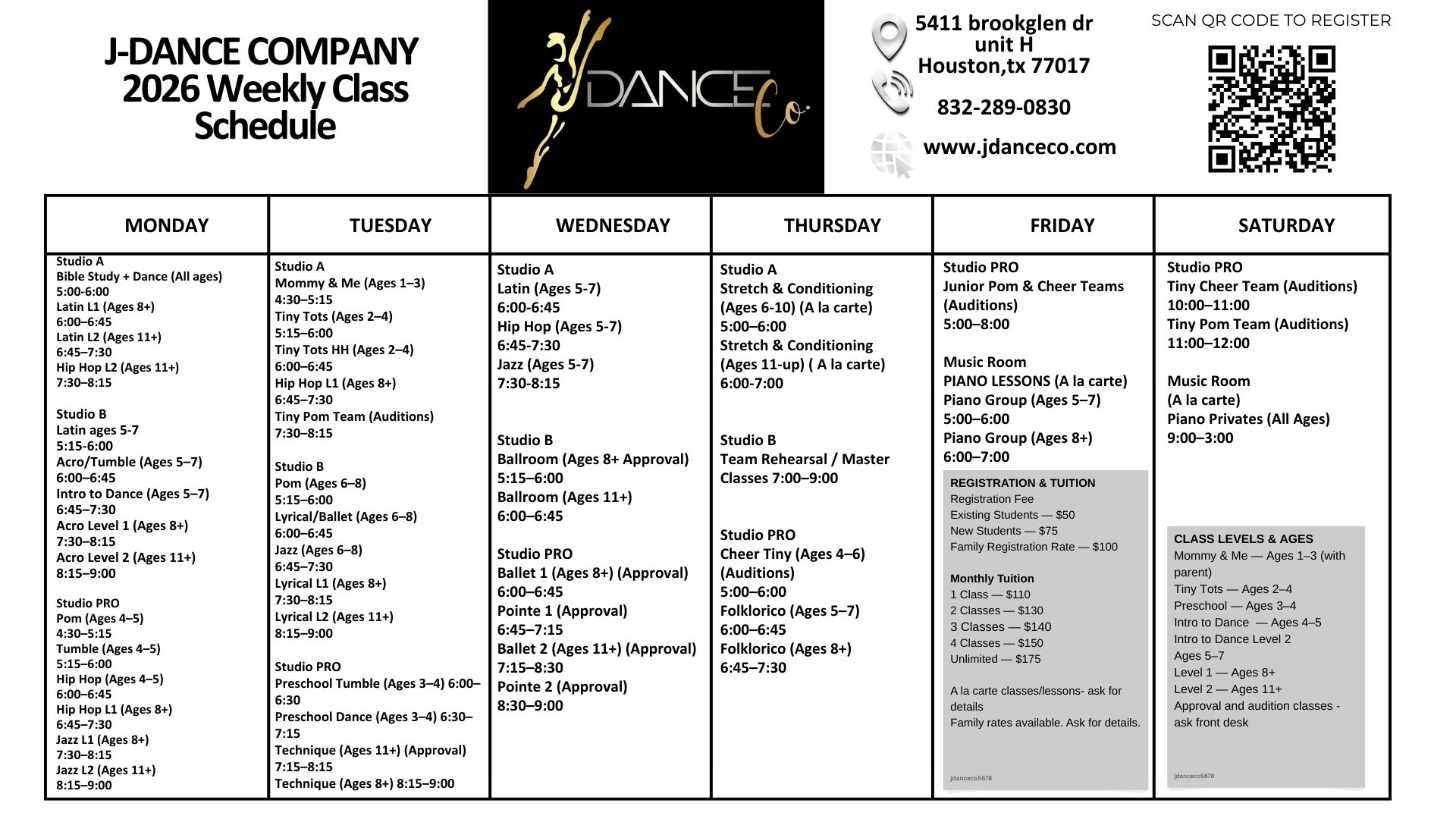 J-Dance Company offers classes for all ages and levels of experience. We offer one free trial class in each style of dance to ensure that your student enjoys the class, is comfortable with the instructor, and wants more. See our class schedule to see your options!